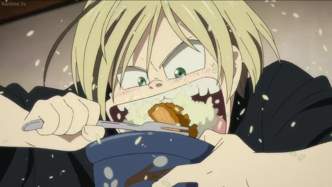 On the other hand, both Victor and Yuri P are attracted by Yuri K’s performance and potential for the championship, hence deciding to visit Yuri K in Japan. Upon their arrival, the two Russian skaters are soon amazed and enchanted by the local food and culture, in particular the hot spring in Yuri K’s home-run hotel and home-made katsudon[5] (カツ丼; deep-fried pork cutlet with egg sauce, served with rice).[6] There are also scenes featuring Victor and Yuri K enjoying katsudon with satisfaction.[7] Victor and Yuri P’s response to Japan and Yuri K the Japanese may suggest many European and American visitors’ perception of Japan, Japanese culture, and Japanese people—it involves a sense of amazement and appreciation, induced by the exoticism they expected and experienced during the visits to Japan. Yet at the same time they may be in awe of Japan’s potential of catching up and even surpassing the dominant European/American cultures and countries.